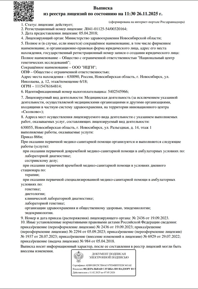 Точность ДНК-теста, который вы можете приобрести в нашем центре «ДТЛ» в Светлом, крайне высока и достигает 99,99999%, благодаря использованию передовых методов анализа и диагностического оборудования в ДНК-лабораторий-партнёров.